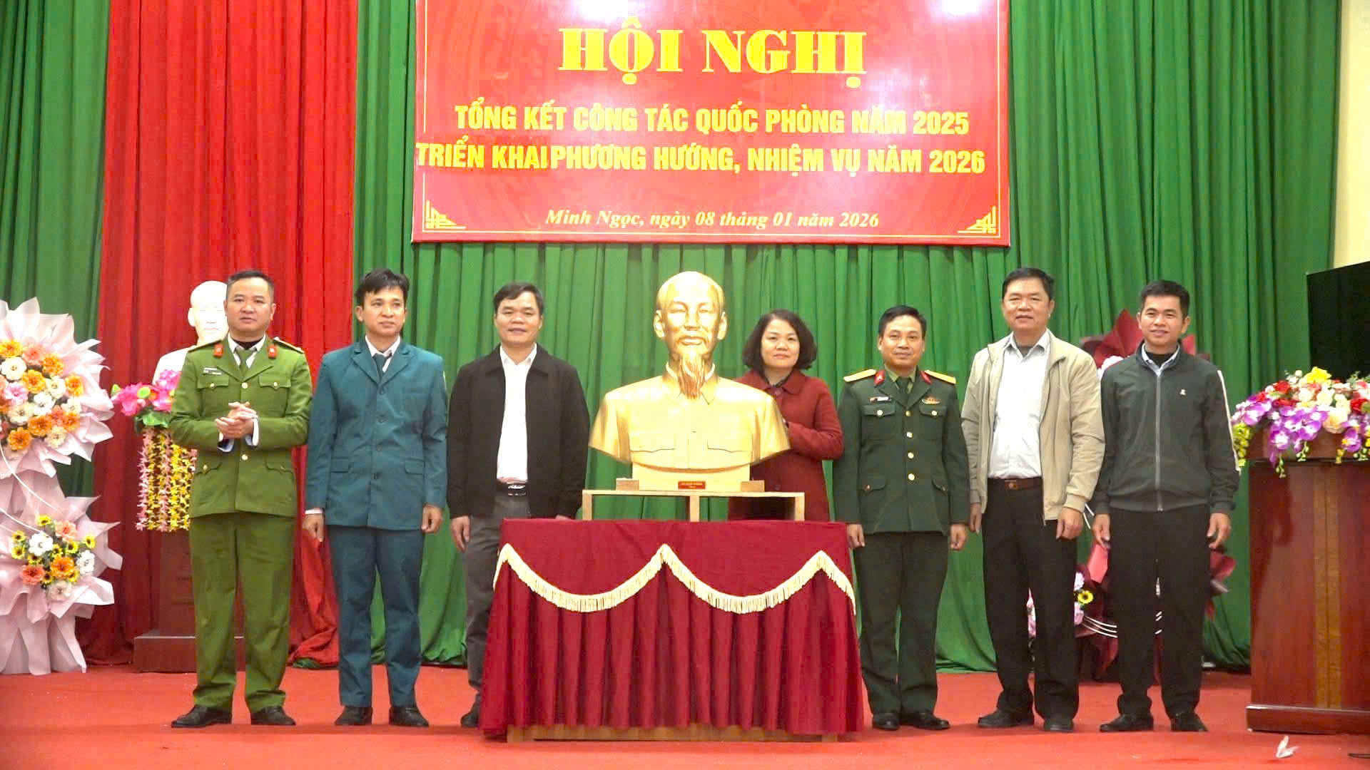 Cũng nhân dịp này, được sự uỷ quyền của Bộ Quốc phòng, đồng chí Trung tá Đặng Hữu Thư, Phó Chỉ huy trưởng BCH Phòng thủ khu vực 2 – Vị Xuyên đã trao tặng quà cho UBND xã Minh Ngọc và UBND xã đã trao Giấy khen cho 3 tập thể và 6 cá nhân có thành tích tiêu biểu trong công tác QP- AN năm 2025. Ban chỉ huy Quân sự xã tặng quà chia tay cán bộ nghỉ hưu theo chế độ 178 đối với đồng chí Nguyễn Đức Hưng, Nguyên Chỉ huy phó BCH Quân sự xã