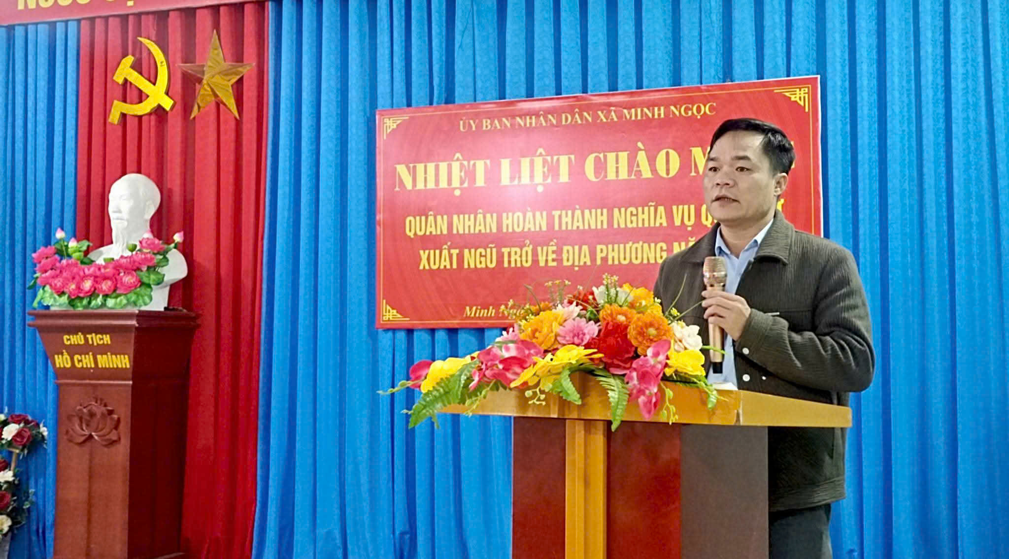 Phát biểu tại buổi lễ, đồng chí Chủ tịch UBND xã Minh Ngọc đã ghi nhận và biểu dương các quân nhân đã hoàn thành xuất sắc nhiệm vụ. Đồng thời, mong muốn, các quân nhân xuất ngũ trở về địa phương tiếp tục phát huy truyền thống “Bộ đội Cụ Hồ” xây dựng gia đình, địa phương và lực lượng dự bị động viên ngày càng vững mạnh.