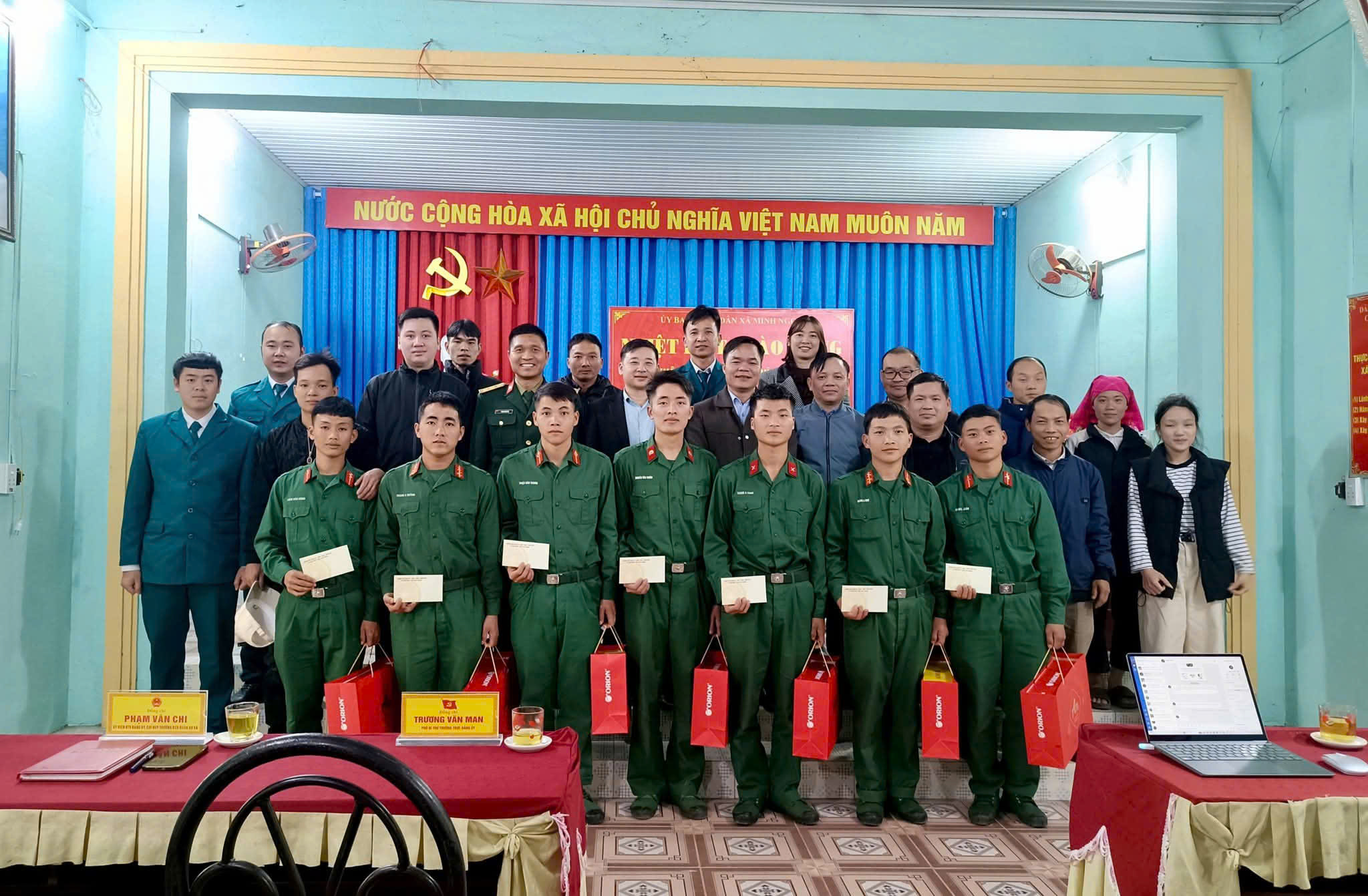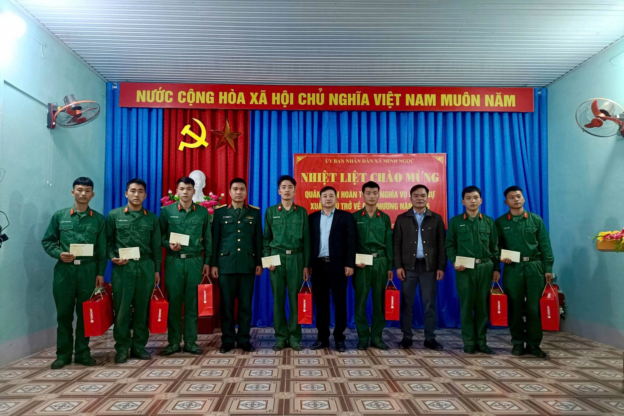 Nhân dịp này, lãnh đạo xã đã trao tặng quà động viên cho các quân nhân hoàn thành nghĩa vụ quân sự.