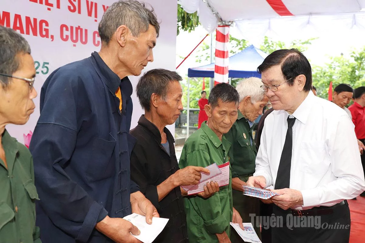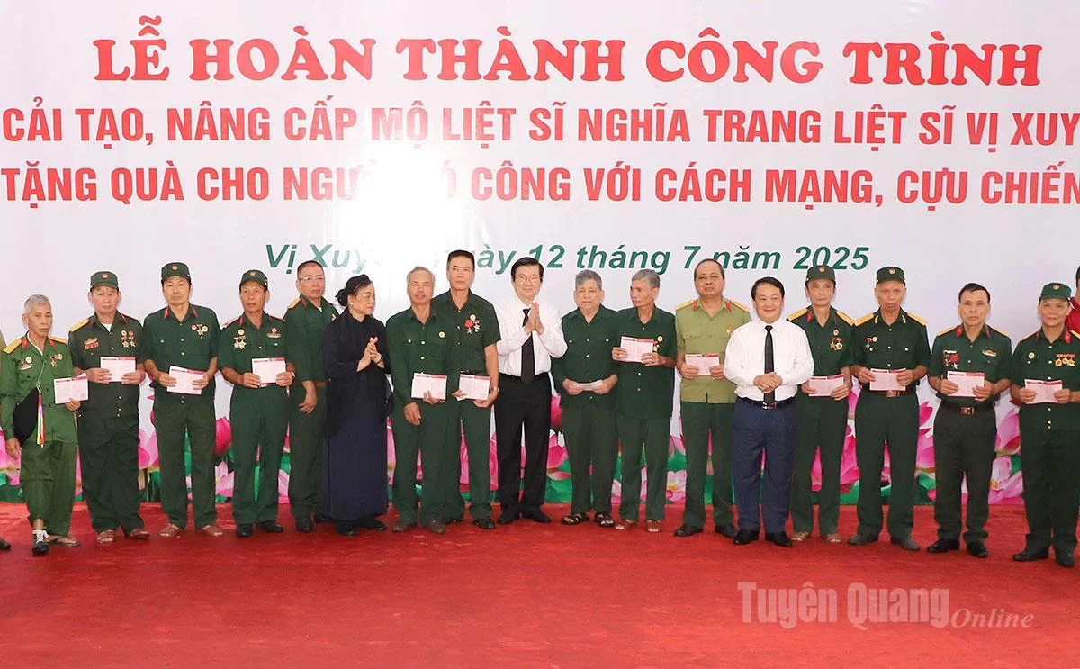 Kỷ niệm 78 năm Ngày Thương binh - Liệt sĩ (27/7/1947 – 27/7/2025), ngày 12/7, các đồng chí: Trương Tấn Sang, nguyên Ủy viên Bộ Chính trị, nguyên Chủ tịch nước Cộng hòa xã hội chủ nghĩa Việt Nam; Hà Thị Khiết, nguyên Bí thư Trung ương Đảng, nguyên Trưởng ban Dân vận Trung ương, Phó Chủ tich không chuyên trách Ủy ban Trung ương MTTQ Việt Nam cùng đoàn công tác đã đến viếng các Anh hùng liệt sĩ tại Nghĩa trang liệt sĩ Quốc gia Vị Xuyên và dự lễ hoàn thành công trình cải tạo phần mộ liệt sĩ; tặng quà cho các cựu chiến binh, gia đình chính sách, người có công.