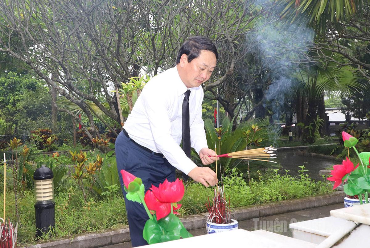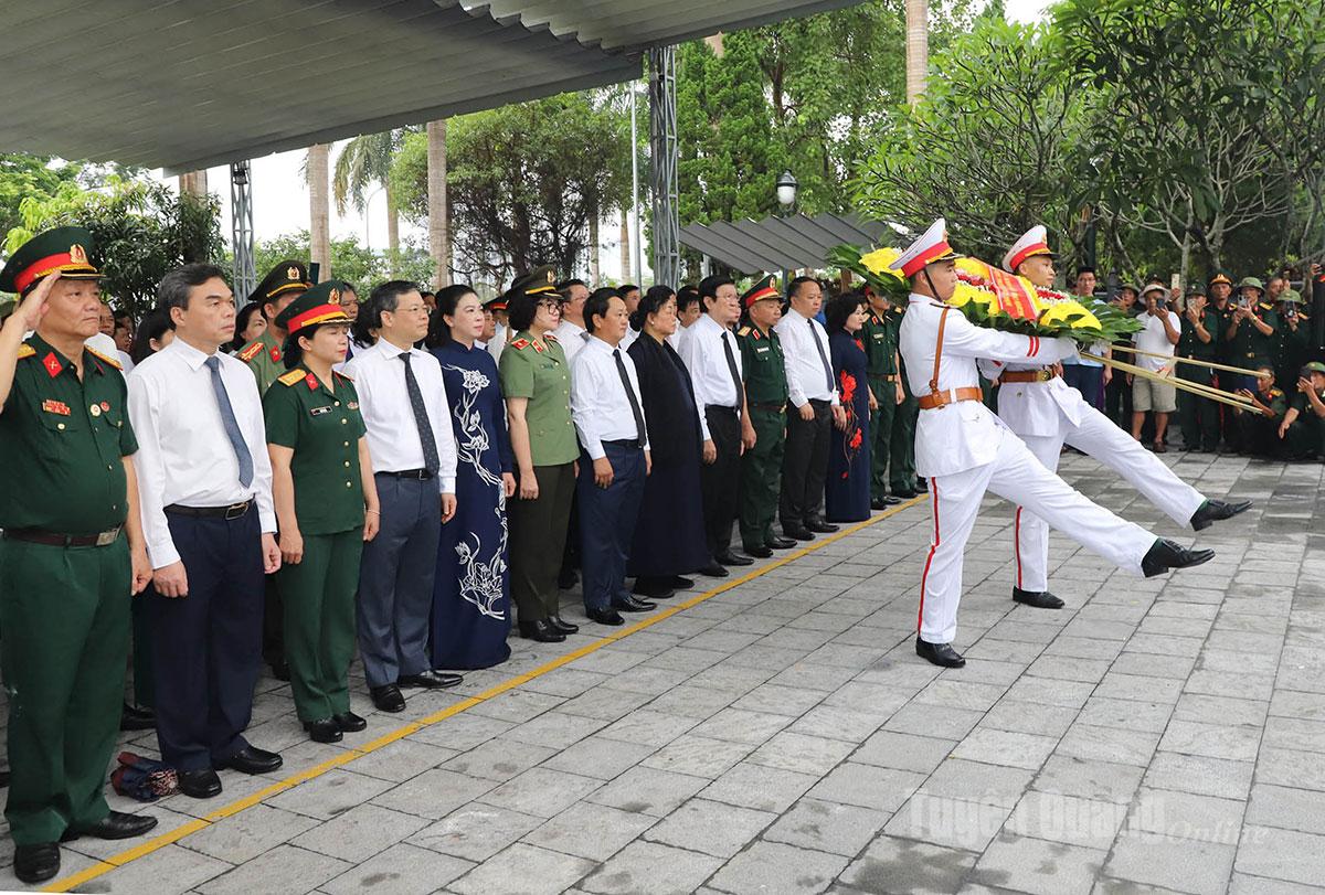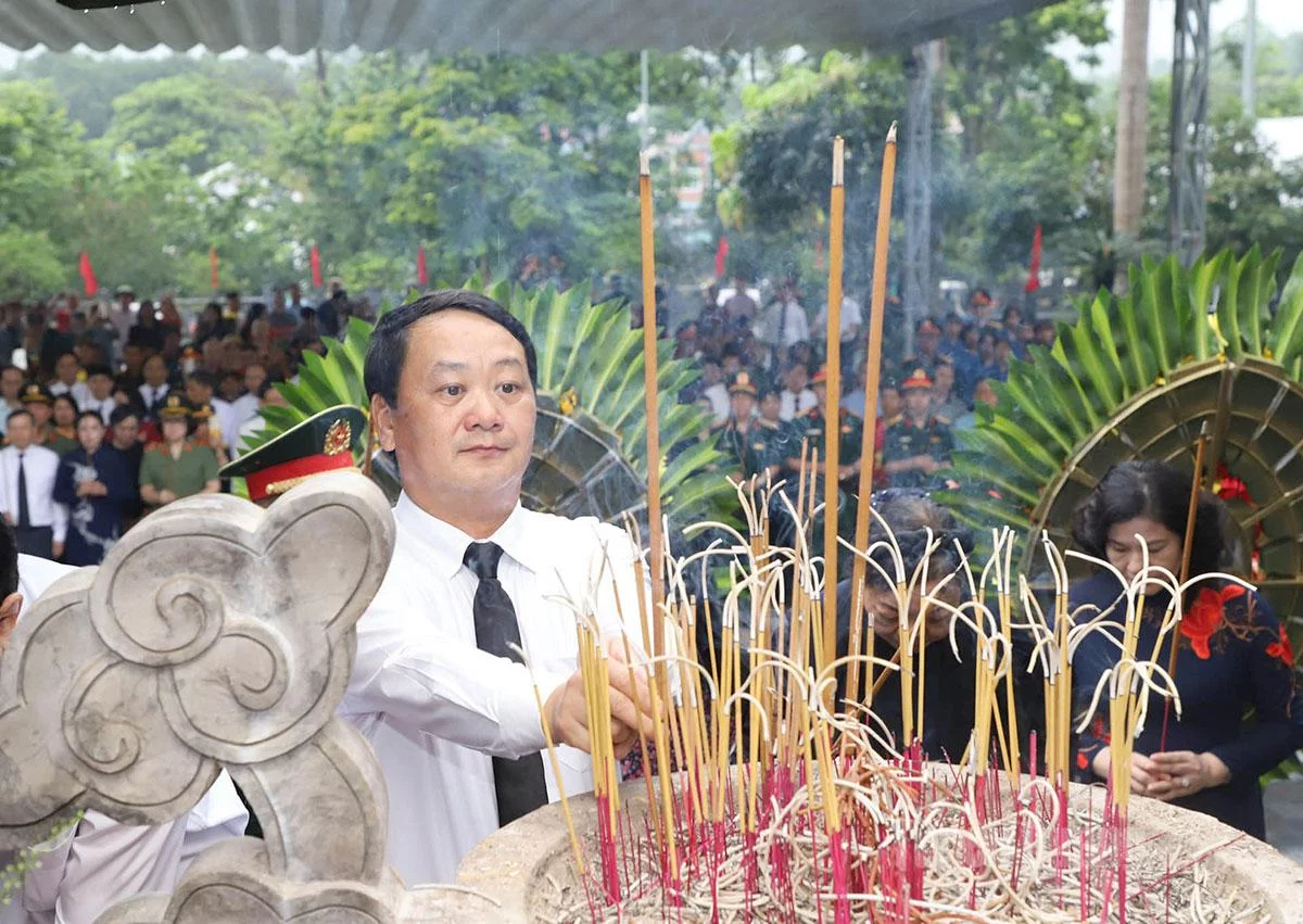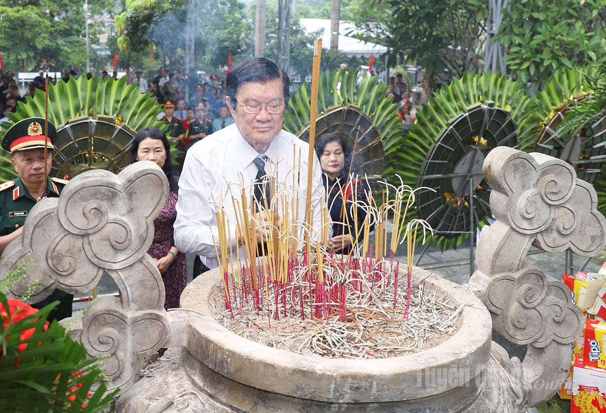 Trong không khí trang nghiêm và thành kính, các đồng chí: Trương Tấn Sang, nguyên Ủy viên Bộ Chính trị, nguyên Chủ tịch nước; đồng chí Hà Thị Khiết, nguyên Bí thư Trung ương Đảng, nguyên Trưởng ban Dân vận Trung ương cùng các đồng chí lãnh đạo Trung ương, lãnh đạo tỉnh đã dâng hương, dâng hoa trước Anh linh Chủ tịch Hồ Chí Minh và các Anh hùng liệt sĩ, những người đã hy sinh vì sự nghiệp đấu tranh giải phóng dân tộc, thống nhất đất nước, bảo vệ Tổ quốc. Nguyên Chủ tịch nước Trương Tấn Sang đã xúc động ghi sổ lưu niệm, bày tỏ lòng tri ân sâu sắc đối với sự hy sinh to lớn của các liệt sĩ.