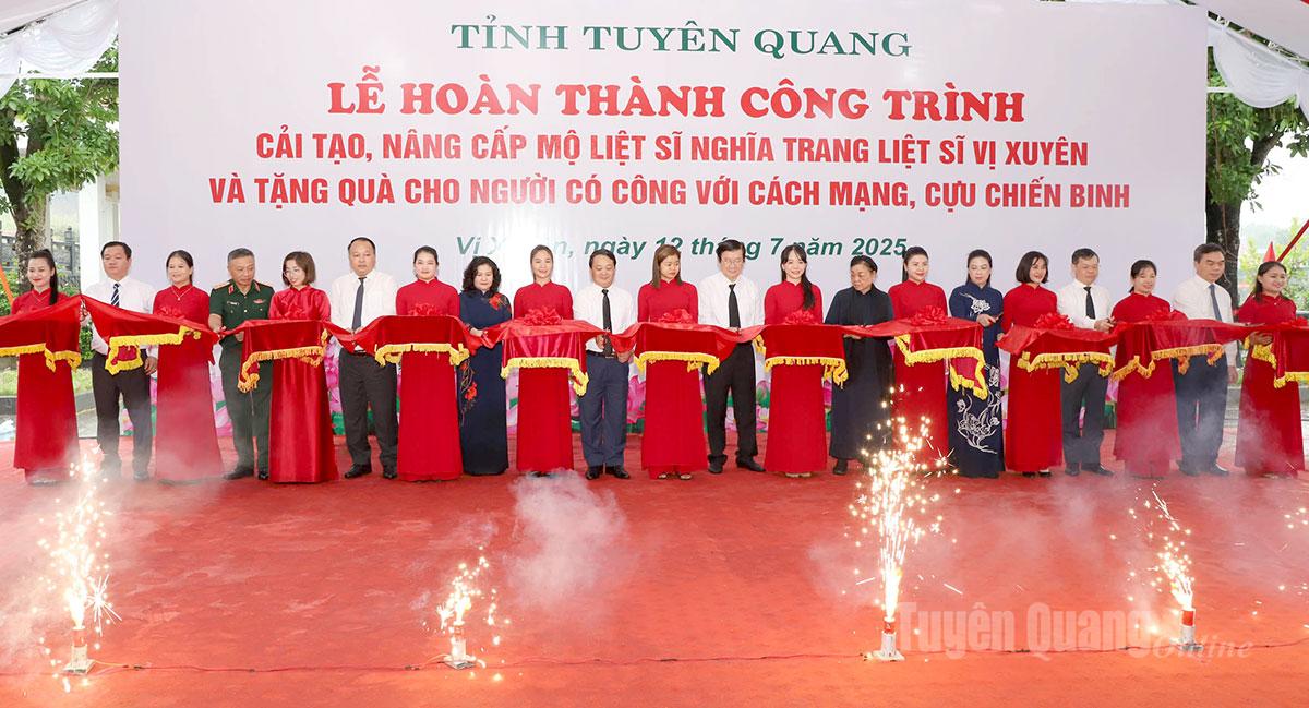 Nguyên Chủ tịch nước Trương Tấn Sang; nguyên Bí thư Trung ương Đảng, nguyên Trưởng ban Dân vận Trung ương, nguyên Bí thư Tỉnh ủy Tuyên Quang Hà Thị Khiết; Bí thư Tỉnh ủy Hầu A Lềnh và các đồng chí lãnh đạo tỉnh, xã Vị Xuyên cắt băng khánh thành Dự án cải tạo phần mộ các Anh hùng liệt sĩ.
