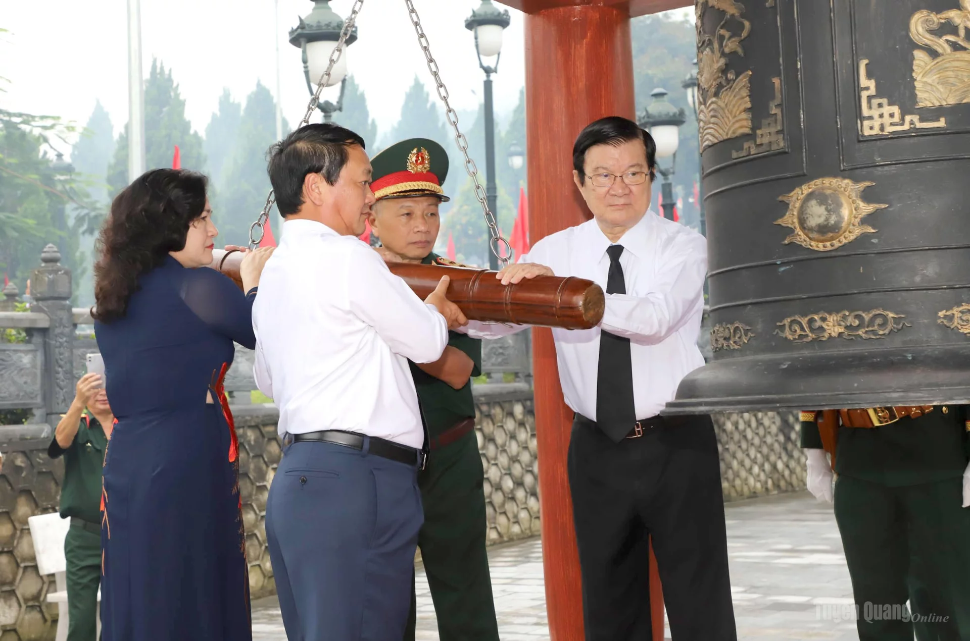 Nguyên Chủ tịch nước Trương Tấn Sang; Bí thư Tỉnh ủy Hầu A Lềnh; Thứ trưởng Bộ Nội vụ Nguyễn Thị Hà; Phó Chủ nhiệm Tổng cục Chính trị QĐND Việt Nam Thượng tướng Lê Quang Minh thỉnh chuông.