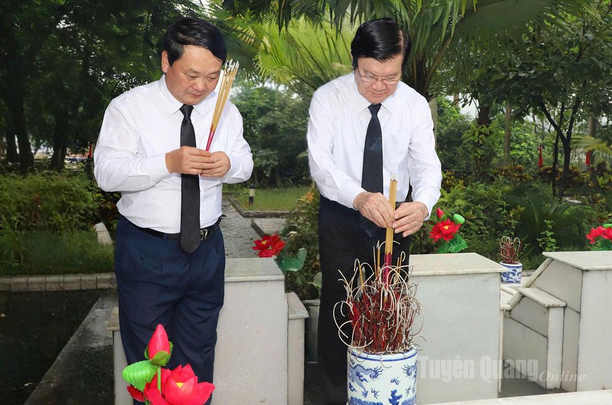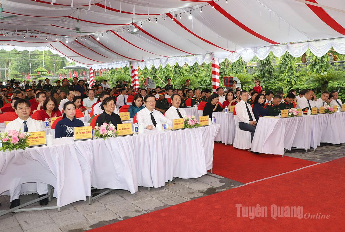Nguyên Chủ tịch nước Trương Tấn Sang; nguyên Bí thư Trung ương Đảng, nguyên Trưởng ban Dân vận Trung ương, nguyên Bí thư Tỉnh ủy Tuyên Quang Hà Thị Khiết; Bí thư Tỉnh ủy Hầu A Lềnh và các đồng chí lãnh đạo tỉnh dâng hoa viếng các Anh hùng liệt sĩ tại Nghĩa trang liệt sĩ Quốc gia Vị Xuyên.