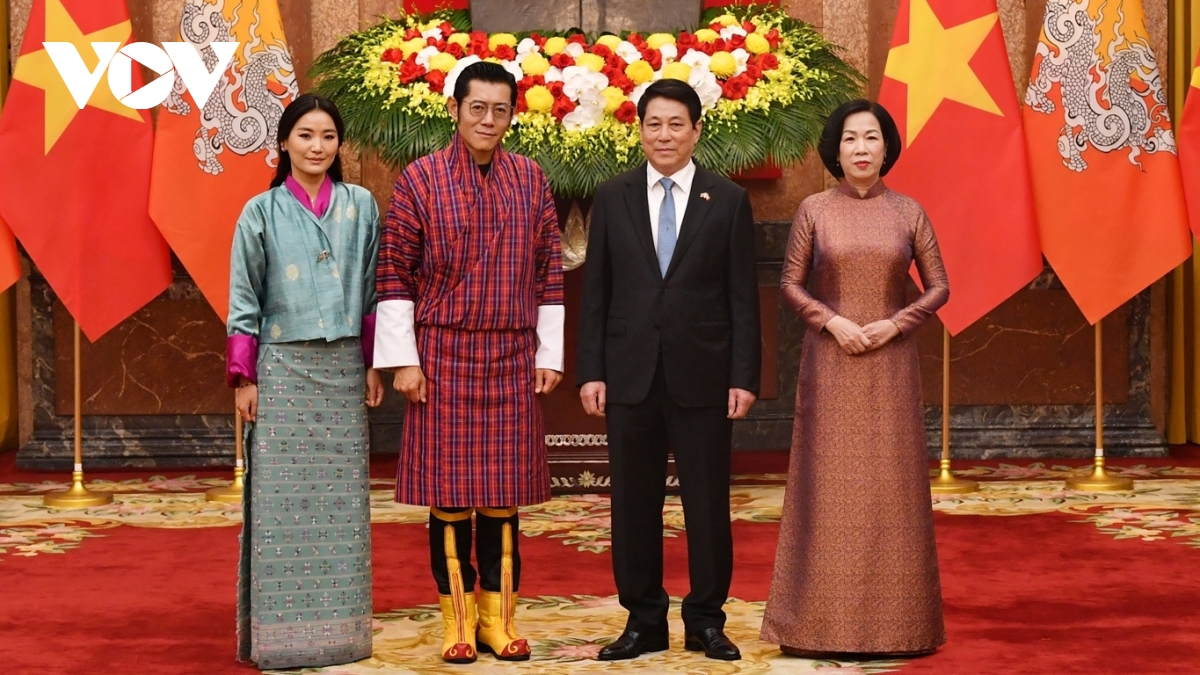 Từ 18-22/8, Quốc vương Bhutan Jigme Khesar Namgyel Wangchuck và Hoàng hậu có chuyến thăm cấp Nhà nước tới Việt Nam. Đây là chuyến thăm cấp nguyên thủ quốc gia đầu tiên giữa hai nước kể từ khi thiết lập quan hệ ngoại giao năm 2012. Chuyến thăm là dấu mốc quan trọng, tạo cơ hội để đưa quan hệ hữu nghị, hợp tác nhiều mặt giữa Việt Nam và Bhutan đi vào chiều sâu, thiết thực, hiệu quả. Trong ảnh: Chủ tịch nước Lương Cường và Phu nhân cùng Quốc vương Bhutan Jigme Khesar Namgyel Wangchuck và Hoàng hậu chụp ảnh chung.