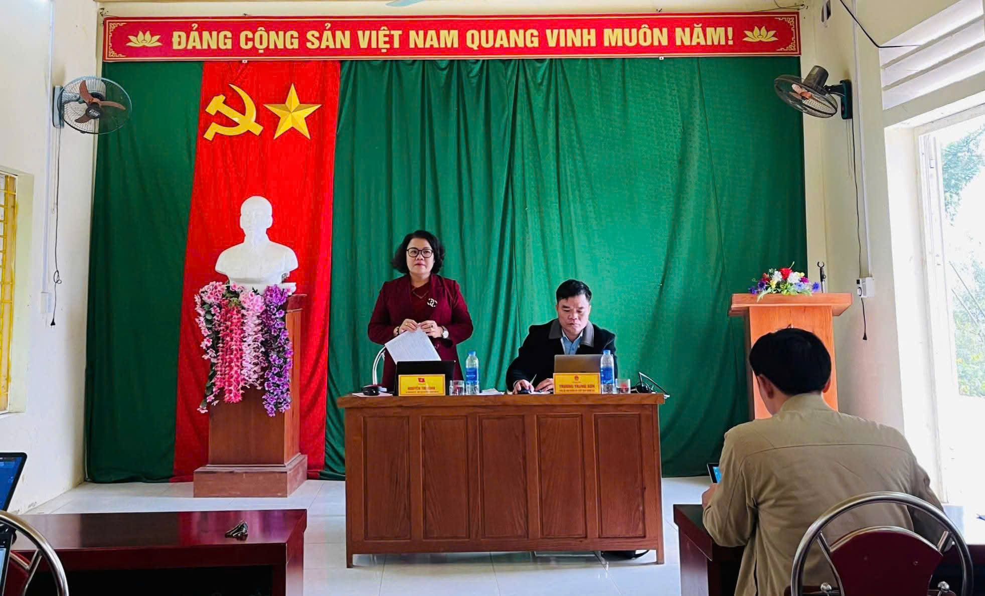 Phát biểu tại buổi làm việc, đồng chí Nguyễn Thị Bình, Bí thư Đảng ủy, Chủ tịch HĐND xã đề nghị: 02 thôn tiếp tục nắm chắc tình hình dân cư, nâng cao công tác lãnh đạo, chỉ đạo của chi bộ, triển khai hiệu quả các chỉ thị, nghị quyết của Đảng và Nhà nước; nâng cao chất lượng sinh hoạt chi bộ, đẩy mạnh sử dụng sổ tay điện tử và công tác tuyên truyền bầu cử. Đồng thời, thôn cần triển khai thực hiện Nghị quyết của BCH Đảng bộ xã, Nghị quyết HĐND, UBND xã; tập trung phát triển kinh tế, giảm nghèo bền vững, chuyển đổi cơ cấu cây trồng, vật nuôi phù hợp; giữ gìn bản sắc văn hóa dân tộc, đẩy mạnh vệ sinh môi trường, chỉnh trang đường làng, ngõ xóm, bảo đảm an ninh, quốc phòng và sớm triển khai sản xuất vụ Xuân năm 2026.