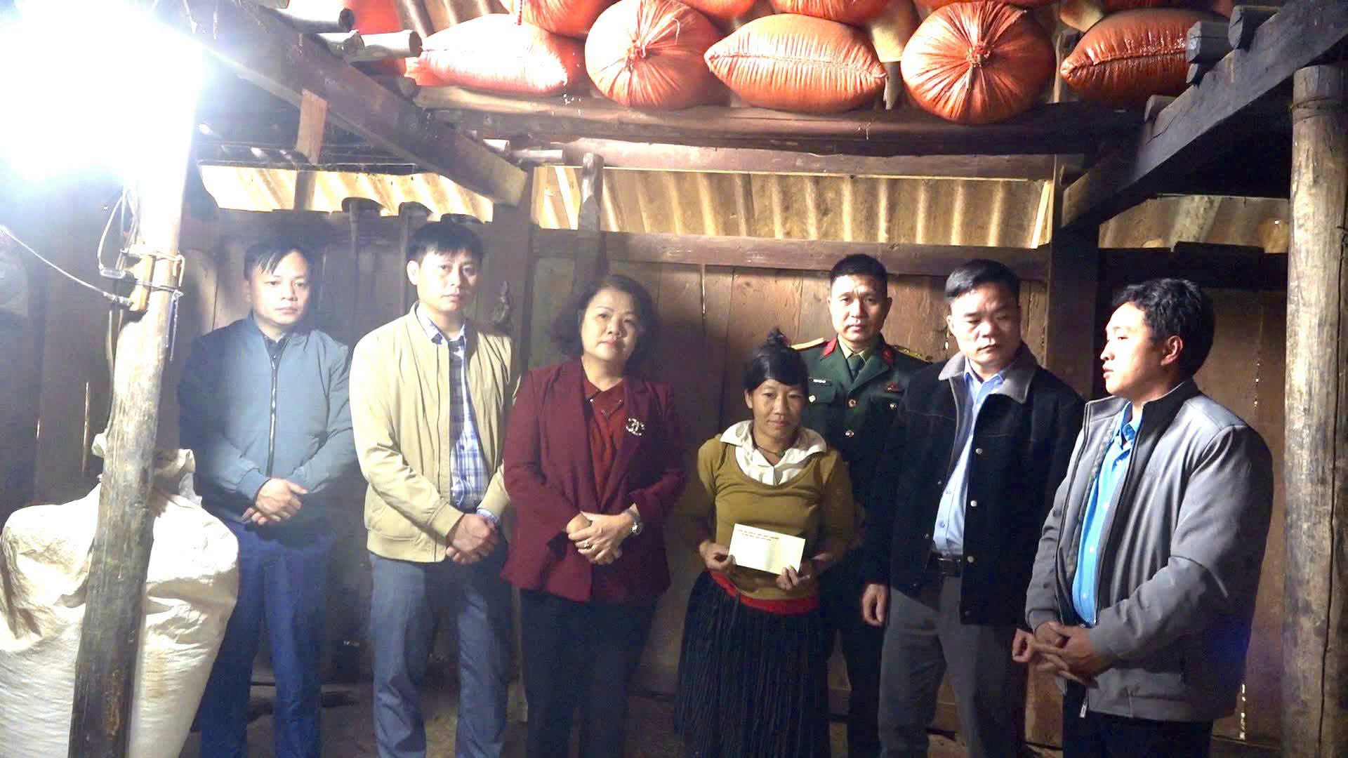 Nhân dịp này, Đoàn công tác đã đi thăm, tặng quà cho hộ gia đình đặc biệt khó khăn Cháng Thị Tủ, thôn Khuổi Trang.