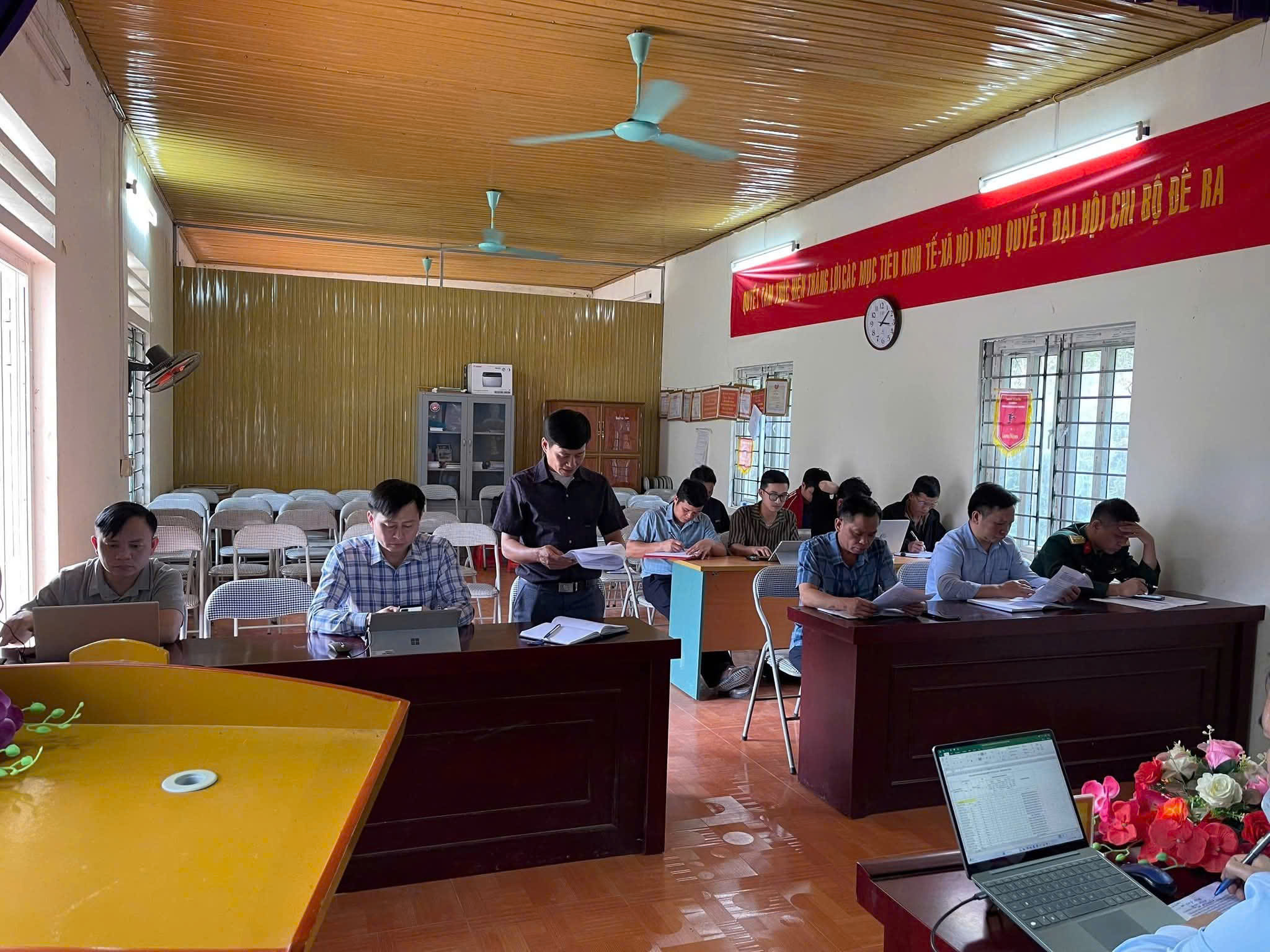 Cùng tham gia đoàn có các đồng chí: Trương Trung Sơn, Phó Bí thư, Chủ tịch UBND xã; Chu Đức Xuân, Ủy viên Ban Thường vụ, Chủ tịch Mặt trận tổ quốc Việt Nam xã; lãnh đạo Phòng Kinh tế; Phòng Văn hóa - Xã hội; Trung tâm Dịch vụ công; Văn phòng Đảng ủy; Văn phòng HĐND - UBND xã.